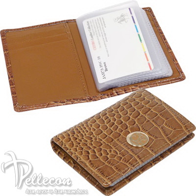 Натуральная кожа. Размер: 8х10,5 см. Для визитных и пластиковых карт. Внутри: 20 прозрачных кармашков для карт, 8 кармашков для пластиковых карт на боковых стенках.