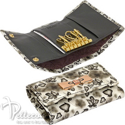 Натуральная кожа. Размер 6,5х11 см. Закрывается клапаном на кнопке. Внутри: 6 колечек для ключей, 2 кармашка.