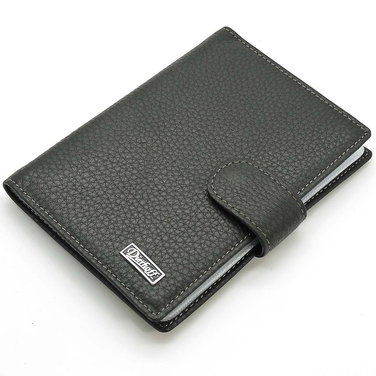 Натуральная кожа. Размер (ШхВ): 9,5х13 см. Закрывается клапаном на кнопке. Внутри - прозрачное и кожаное поля, на боковой стенке четыре кармашка для пластиковых карт, съемный ПВХ вкладыш для автодокументов.