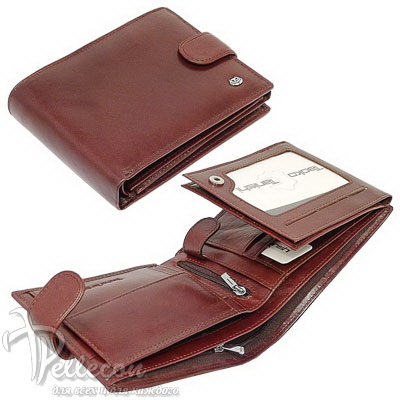 Натуральная кожа. Размер: 10,5х14 см. Внутри: три отделения для купюр (одно с молнией), монетник с кнопкой, шесть кармашков для пластиковых карт, три боковых кармана, один внутренний карман на молнии, три прозрачных кармана на створках.